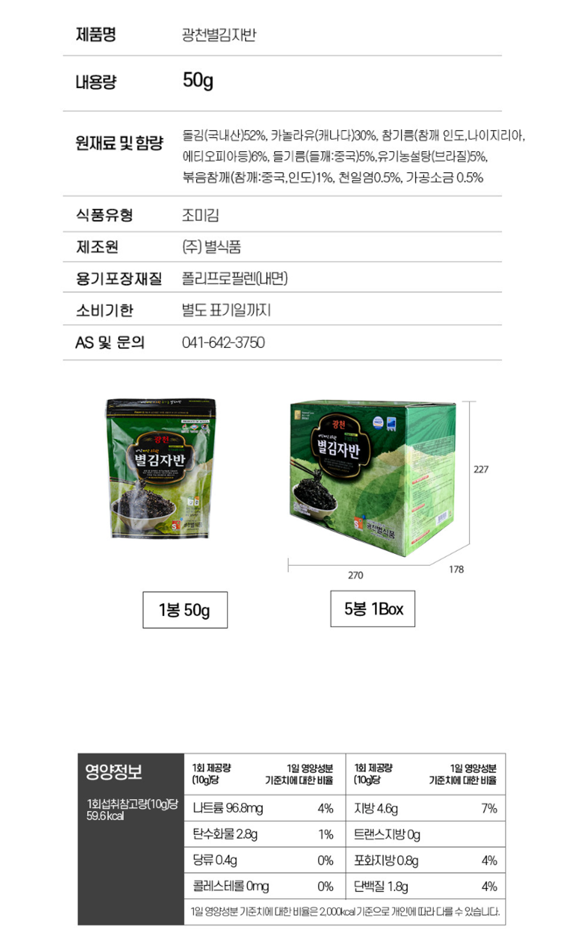 | 영양성분 | 상세페이지별도표기 |